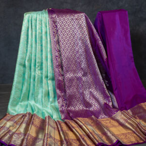 Kanchipuram Sea Green & voilet Resham brocket kuttu border