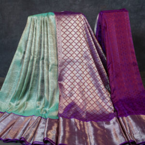 Pure kanchipuram sea green & Violet Resham kadiyal kuttu