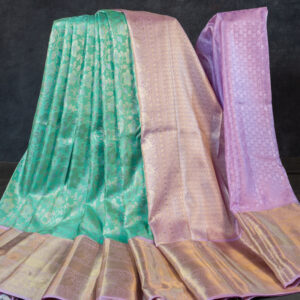 Pure kanchipuram Sea green & lilac Contrast Border & pallu Resham saree
