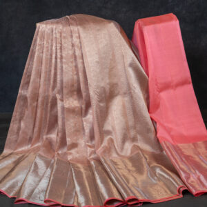 Pure kanchipuram light peach & dark peach silver zari Resham Saree
