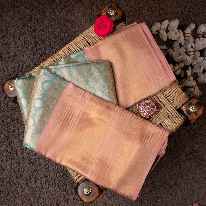 “Eternal Radiance: Step into timeless sophistication with our Pure Saree, adorned in 1 gm Zari. A masterpiece of opulence and tradition, each thread meticulously woven to drape you in elegance for every special moment.”