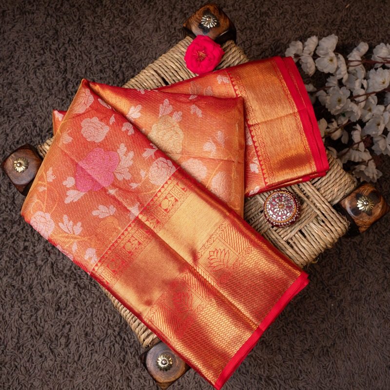 “Radiant Tradition: Embrace sophistication with our Pure Kanchi Saree, adorned in 1 gm Zari. Each thread whispers tales of heritage and opulence, draping you in timeless elegance.”