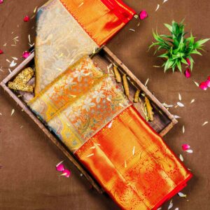 Exquisite Kanjivaram Silk Saree in Orange and Gold